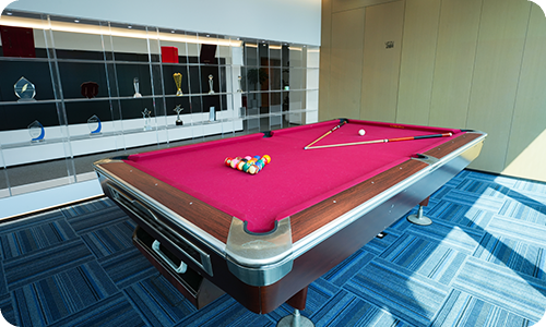公司內部設有健身器材、臺球桌、乒乓球桌